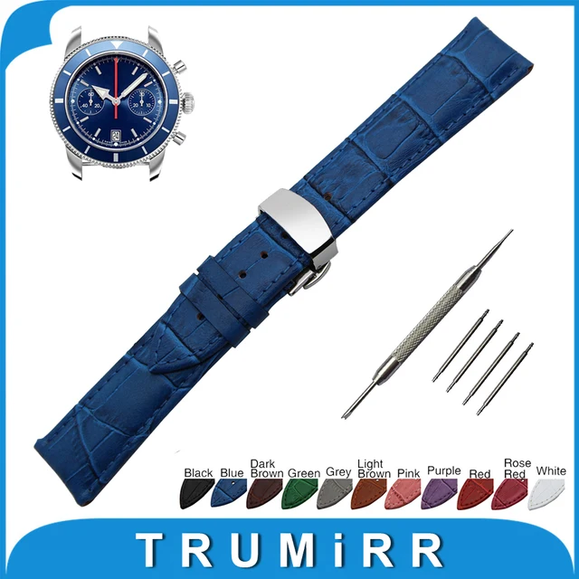 | [해외] 18 미리메터 20 미리메터 22 미리메터 24 미리메터 정품 가죽 시계 밴드 breitling 스테인레스 butterfly 버클 스트랩 손목 벨트 팔찌 + 봄 바 |