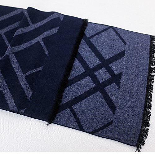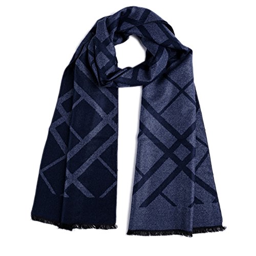 CICI RAN Men Two Tone Reversible Cashmere Feel Winter Scarf Navy Plaid