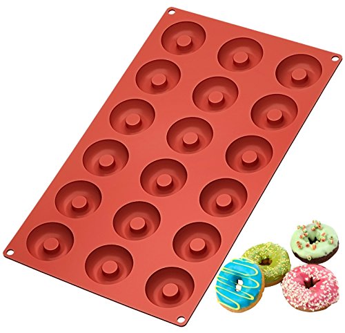 Ozera Silicone Mini Donut Pan, Muffin Cups, Cake Mold, Biscuit Mold, 18 Cavity, Red