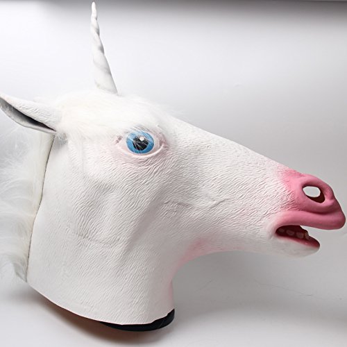 -. Brand : Signstek -. Color : White -. Department : unisex -. EAN : 6922302501198 -. Feature : Made from 100% natural imported latex, environmental and non-toxic. / About 400±10g weight, 58CM girth, large enough to fit adults and kids. / Designed with big eyes, mouth, teeth and nostrils, more vivid and scary. / How do you see? Through the mask's mouth and nose's hole. / Great for Masquerade Parties,Costume Parties, Carnival, Christmas, Easter,Halloween or any other parties. -. MPN : Signstek -. PackageQuantity : 1 -. PartNumber : Signstek -. ProductGroup : Apparel -. ProductTypeName : CHILDRENS_COSTUME -. Size : Medium -. Title : Signstek Horror Magical Unicorn Head Mask Scary Halloween Cosplay Party Costume