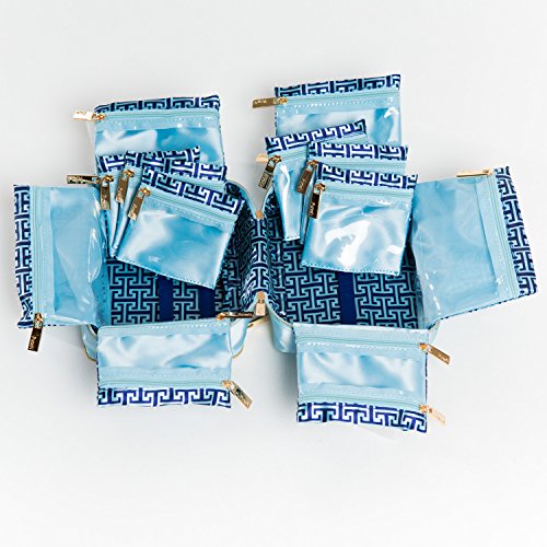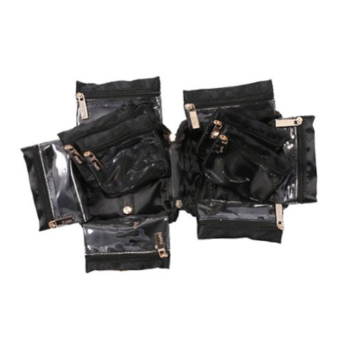 -. Feature : Vacationer: 3.5" H x 5.5" W x 5" D. / 4 double side pockets. 2 large single end pockets. / 6 removable pouches. / 1 padded ring strap. 2 middle straps for removable pouches. / Compact design. Expandable zipper bottom.