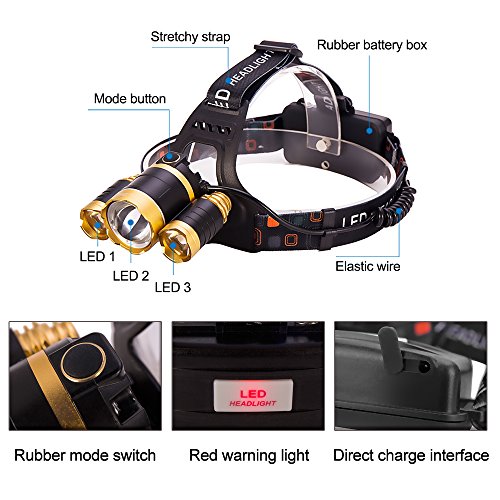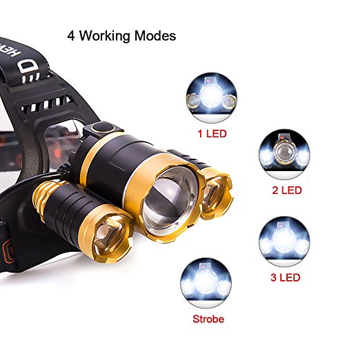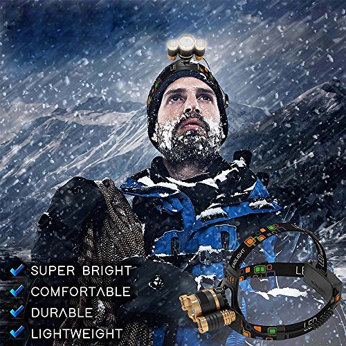 Refoss Headlamp LED, 4 Modes, Rechargeable 18650 headlight flashlights, Waterproof Hard Hat Light, Bright Head Lights, Reading Outdoor Hiking Camping Riding Fishing Running