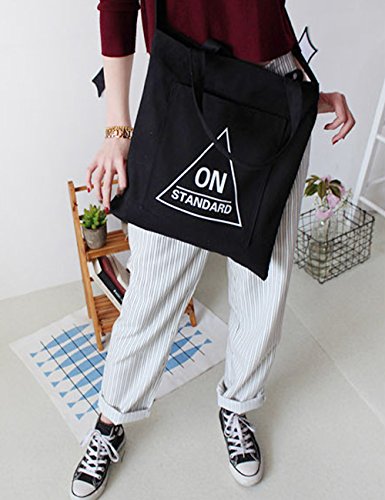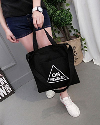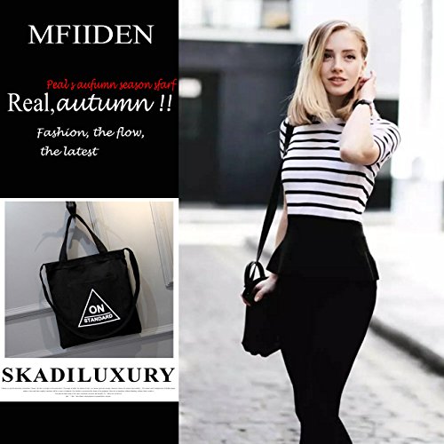 -. Title : MFIIDEN Fashion Canvas bag ON STANDARD Bag Shopping Tote Bag for Women and Student Black Canvas Tote Bag