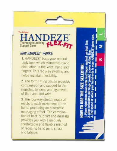 Product DescriptionHandeze flex-fit fingerless support gloves that help reduce hand, fingers and wrist pain resulting from performing continuous or repetitive motion activities. Size 4, medium0