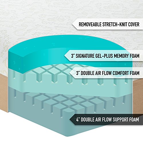 - Feature : This Amazon Exclusive Perfect Cloud mattress pampers you with a thick 3" layer of Signature Gel-Plus Memory Foam. Our mattress meets the coveted Goldilocks standard of 'just right.' Just like a great hotel bed, nearly all sleepers will love it. / The second layer is comprised of a 3" bi-directional Double Air Flow Comfort Foam which provides ample air flow and support without compromising comfort. / A third 4" layer of Double Air Flow HD Base Support Foam provides a second layer of bi-directional Double Air Flow for temperature-neutral sleep. / Our best-in-class premium textile Stretch Knit Cover is fully removable for easy care and features a Mocha Ultrasuede siding for soft-touch feel and a contemporary look. / 25 Year Warranty.
