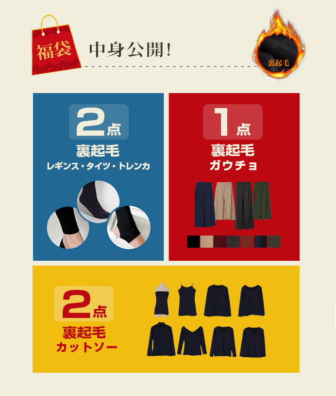 計5点が入った『5点入り暖か裏起毛福袋』として発売!