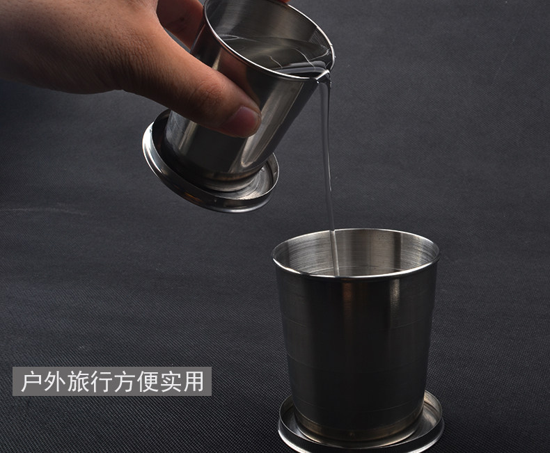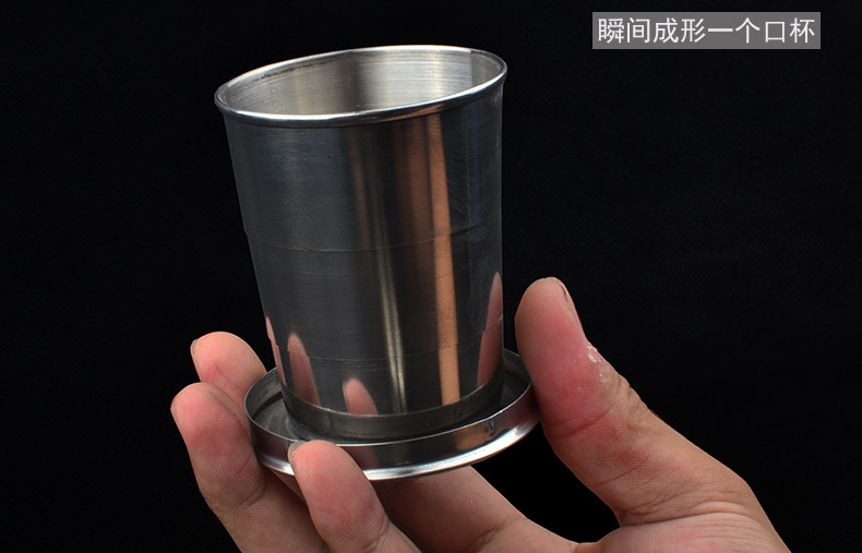 把折叠杯向上用力往一个方向旋转,不锈钢之间有个着和力,要旋转过才能固定,不转就会很容易松动。