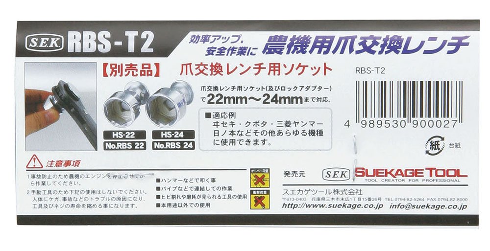 ● [Product Size] Width 42 × height 485 × depth 22 mm Weight 840 g ● Product code: 4989530900027 ● JAN Code: 4989530900027 ● Brand name: SEK ● Product name: Agricultural nail exchange wrench ● Standard: RBS-T2 17X19