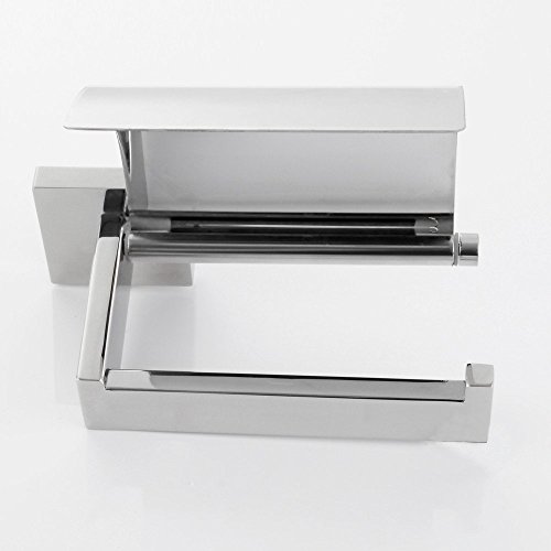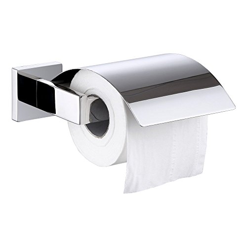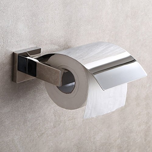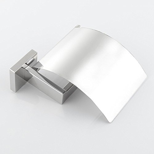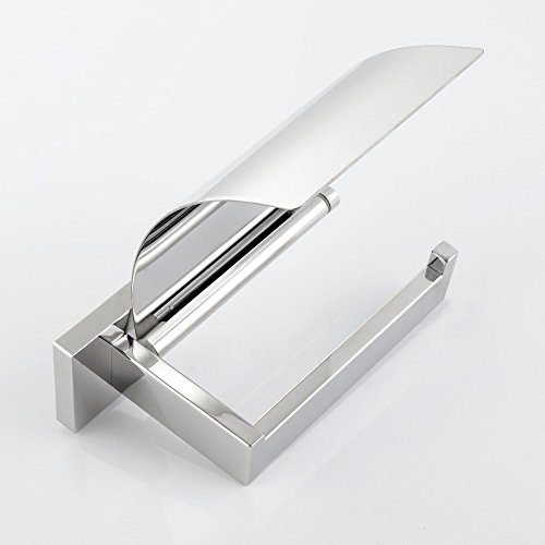 Toilet Paper Holder With Cover, Angle Simple SUS304 Stainless Steel Paper Roll Hanger Bath Tissue Roll Holder With Metal Flap Keep From Water Splash Wall Mount Polished Chrome