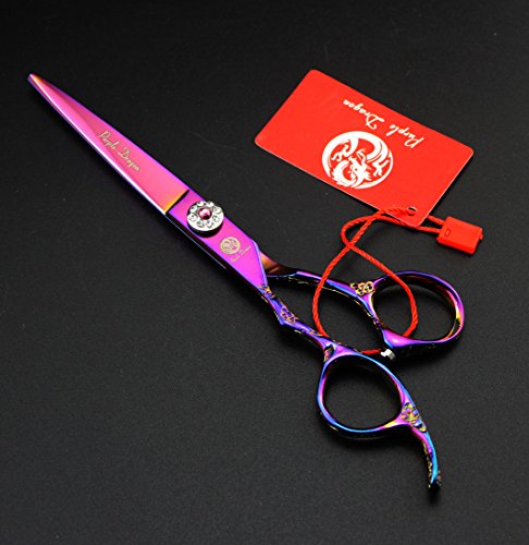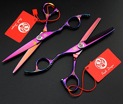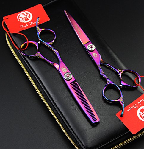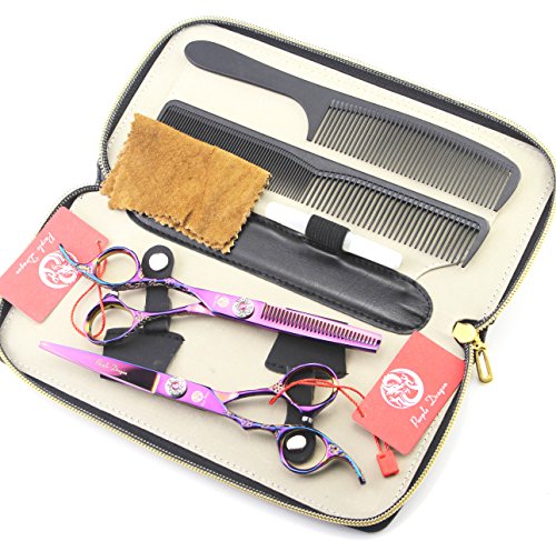 Left Hand Using Professional Barber Hair Cutting Scissors Flower Carving Salon Hair Thinning Kit with Leather Case(Purple)