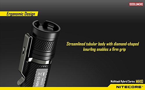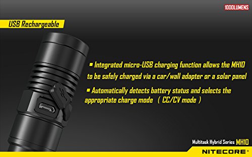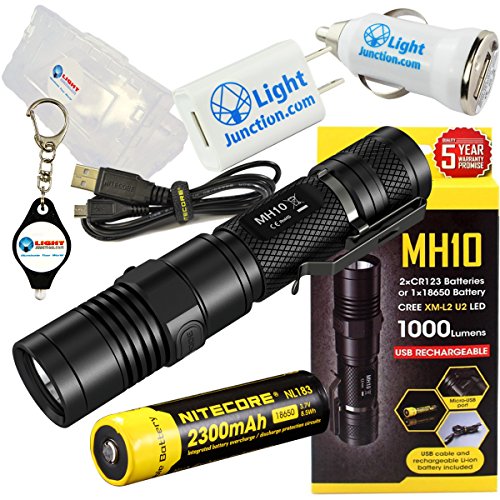 BUNDLE: Nitecore MH10 Multitask Hybrid Series CREE XM-L2 U2 LED Rechargeable Flashlight 1000 Lumens w/ USB Wall Charger Plug, USB Car Charger Plug, Battery case for 18650, 1x 18650 (included) and Lightjunction Keychain Light