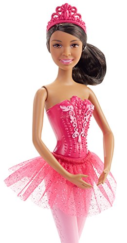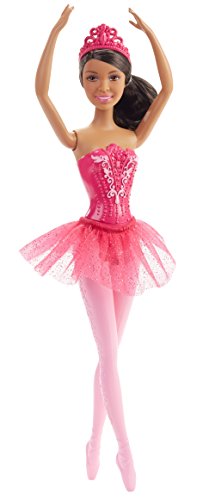 This Barbie doll is dressed to dance the day away in a stage-ready ballerina costume. Whether gracing the stage or pirouetting into a scene, she's ready for you to start the show! Barbie ballerina doll wears an attached bodice with delicate detail and a removable tutu in a sheer pink fabric. A matching removable tiara and attached toe shoes (with painted tights) complete the prima ballerina look. With a polished ponytail and posed arms, this dancer won't miss a step. Collect all of the Barbie fairytale dolls for endless storytelling possibilities (each sold separately, subject to availability) -- because with Barbie, you can be anything! Includes doll, removable tutu and tiara. Doll cannot stand or dance alone. Colors and decorations may vary.Feature