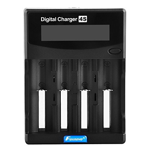 -. Title : Foxnovo F-4S 4-Slots Li-ion Ni-MH Ni-CD Sound Prompt Battery Capacity Testing LCD Intelligent Battery Charger with US-plug Adapter 12V Car Adapter for 26650, 22650, 18650, 18500, 18490, 17670, 17650, 17500, 16340, 14500, 10440 Ni-MH and Ni-CD A, AA, AAA, C, SC Rechargeable Batteries (Black)