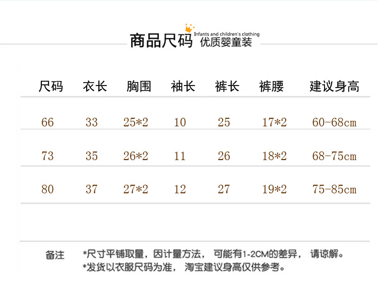 尺码:66码/(3-6个月)适合身高:60-68cm