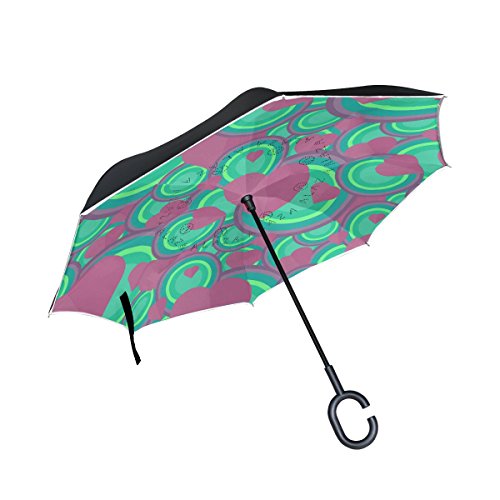 (AHOMY)/Accessories/Umbrellas/DIRECT FROM USA/AHOMY Valentine's Day Heart Geometric Figure Round Large Double Layer Inverted Umbrella Windpro...