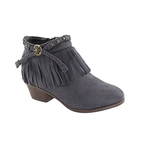 LOVEMARK FO85 Girl's Metallic Studded Tassel Fringe Stacked Heel Ankle Booties