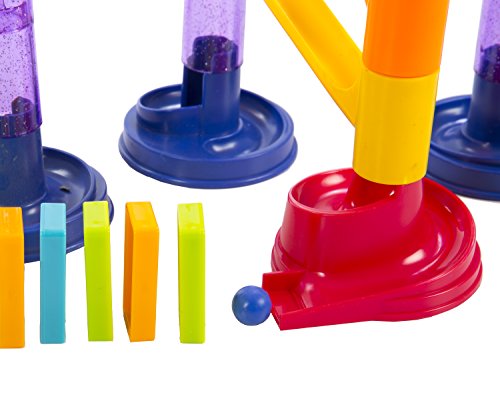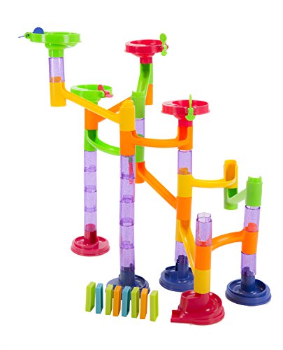 -. Feature : EDUCATIONAL AND FUN: Designed to engage your child's motor skills, our Deluxe Marble Run playset is great for developing commonly ignored abilities in child rearing. This playset teaches children hand-eye coordination and fosters creativity. Our Deluxe Marble Run playset increases the aptitude of your child's hand eye coordination, presents them with a medium to channel their imagination as they build, and most importantly allows them to have fun in the process! / FUN FALLING DOMINOS: Dominos allow children to expand the magnitude of their creations, while providing a fun goal to achieve at the end of their design. Set up the dominos as an obstacle to avoid or a wall to be destroyed. The choice is up to the creativity of your little one! / HOURS OF CREATIVE PLAY: With do-it-yourself assembly and a nearly infinite amount of possible designs, our Deluxe Marble Run With Dominos playset is guaranteed to keep even the most acute mind interested for hours on end. You can even give your child focused challenges like making the most efficient marble run in terms of speed while using all the pieces. The possibilities are limitless! / SAFE AND EASY STORAGE: Made from 100% BPA, PVC, and phthalate free plastic, our Deluxe Marble Run With Dominos set is completely safe for use, even for an extended period of time. Plus, cleaning is easy - simply wipe with a damp cloth. Our playset is also easy to store away, since all the pieces are detachable. Just place the pieces in the box and store the box away. / SPECIFICATIONS: Package includes (4) green top entry pieces, (4) blue bottom pieces, (1) pink exit piece, (7) orange arched bridge pieces, (10) green straight bridge pieces, (15) marbles, (100) dominos, and (22) tower pieces. Please note: Product contains small pieces. Not for children under 3 years old.