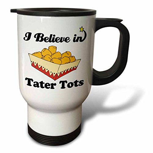 3dRose tm_105602_1 I Believe In Tater Tots Travel Mug, 14 oz, Stainless Steel, White