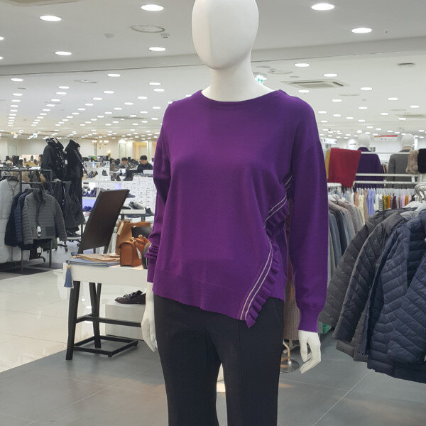 기본라운드형에믿단프릴사선이포인트되는 니트티셔츠입니다