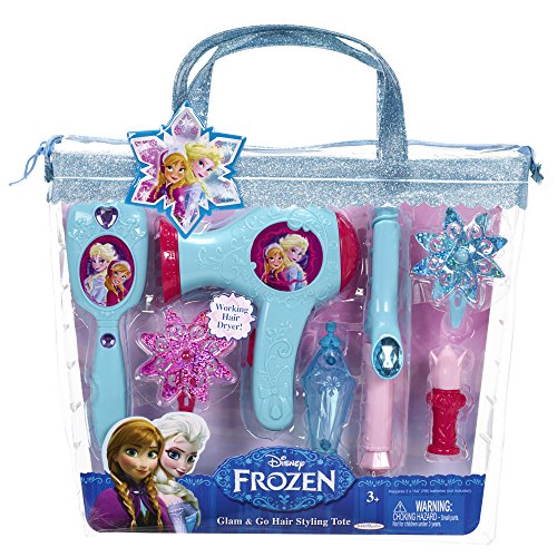 Become pretty as a princess with your favorite Frozen sisters! Style your hair like Anna or Elsa with the flat iron or working hair dryer! Includes: Battery Operated Hair Dryer, Brush, Play Perfume Bottle, Play Lipstick, and 2 Holographic Barrettes.