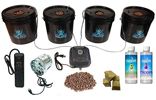 -. Feature : Grow Tent & 300w LED Grow Light with IR / 4 Reservoir Tanks, 4 Net Pots, 4 Rockwool Cubes, Exhaust Fan / 4 outlet Air pump & air stones / Power strip with timer, clay pebbles / Grow & Bloom Starter Nutrients