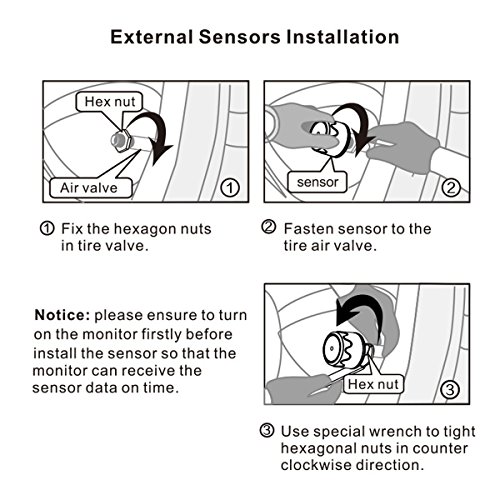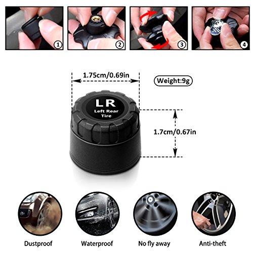 > Reliable sensors and easy to install, Light Weight – No Need For Rebalancing Tires, waterproof, dustproof and Anti-theft Design, Sensors signal covers about 8 M (26 ft),Beyond 10 M (33 ft), there’s no signal