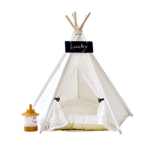 -. Title : Pet Teepee Dog & Cat Bed - Dog Tents & Pet Houses With Cushion & Blackboard ,White,Lace Style