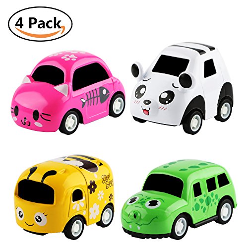【4 SET MINI CARTOON CAR】Pull back vehicles, Bright and Colorful, 4 different die-cast cars included. Friction powered (no batteries required) for a fun and handy toy set kids can take with them anywhere