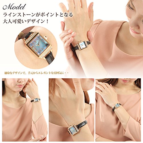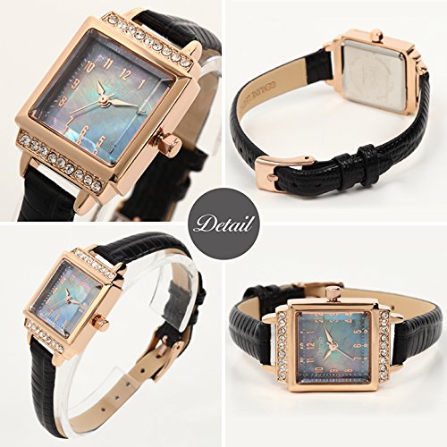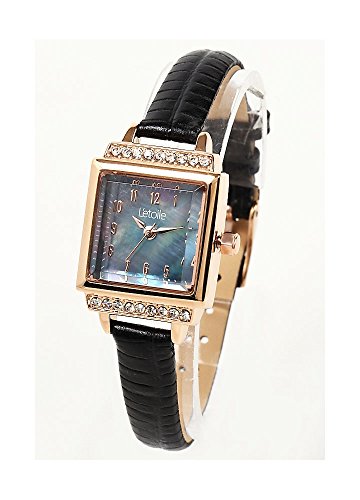 -. Title : 【レトワール】L'etoile ラインストーン スクエアケース レザーベルト カジュアル 上品 ウォッチ アナログ レディース 腕時計 FV22 (ピンクゴールド×ブラック) [並行輸入品]