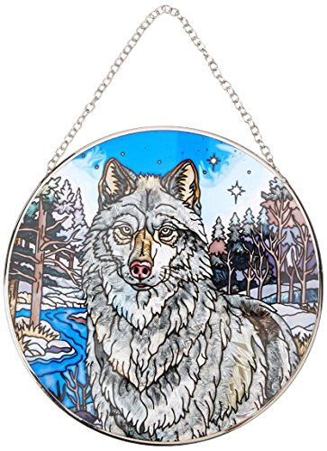 Amia Handpainted Glass Wolf Suncatcher, 6-1/2-Inch