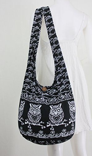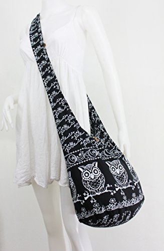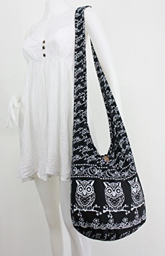 Black Owl Hippie Boho Vintage Sling Cross body Shoulder Messenger Bag Large OWLL1