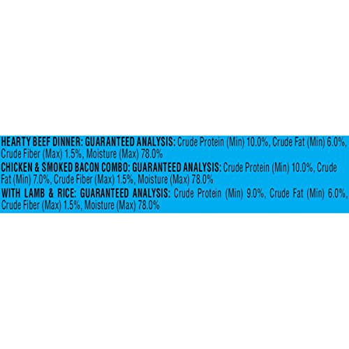 Contains: 4-5.5oz cans of Hearty Beef Dinner, 4-5.5oz cans of Chicken & Smoke Bacon Combo & 4-5.5oz cans of Lamb & Rice