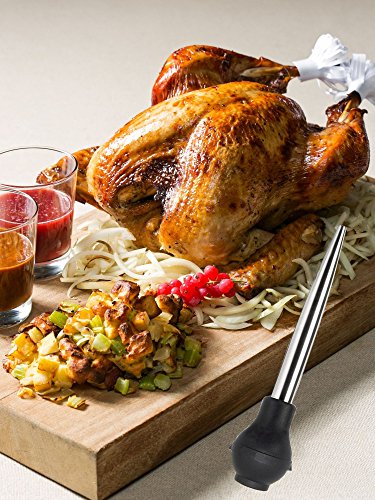 Product Description Stainless Steel Turkey Baster Syringe with Silicone bulb and Needle Cleaning Brush