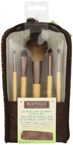 Set includes: pointed concealer brush round powder brush detailed lip brush stay-there eyeshadow brush and smudge brush. A beautiful clutch ideal for storing your EcoTools makeup brushes and perfect fashion accessory for a night on the town. For uneven spots touch up with the pointed concealer makeup brush and the round powder brush. Perfect your pout with the detailed lip/liner brush. Blend out creases with the stay-there eyeshadow brush. Finish with the smudge brush to create a smoky eye perfect for a night out! Synthetic bristles are cruelty free. Experience the incredibly soft touch of cruelty free bristles EcoTools beauty solutions promote Living Beautifully! We are inspired by beauty inside and out and in the world around us. While we always want to look our best we feel even better when we can make earth-conscious choices. EcoTools remains a favorite of celebrities beauty editors and women around the world. Best known for our incredibly soft cosmetic brushes and handles we take pride in offering a collection of cosmetic makeup brushes hairbrushes lashes and bath products that feature innovative materials. Our includes natural materials reusable pouches post-consumer recycled paper and plastic and recyclable packaging. The eco pouch is phthalate-free and PVC-free. Cleaning your Makeup Brushes Unclean makeup brushes transfer old makeup germs and bacteria to your skin each time you use them. Ideally you should wash them once a week and here’s the best way how: Run the bristles of makeup brush under warm running water. Careful not to get the ferrules and handles wet. Apply a drop of gentle shampoo or clarifying cleanser to bristles and work into a light lather. Rinse bristles thoroughly under warm running water. Continue rinsing until water runs clear. Use a cloth to absorb excess water and reshape the bristles Lay your makeup brushes flat or “handles up†to air dryFeature
