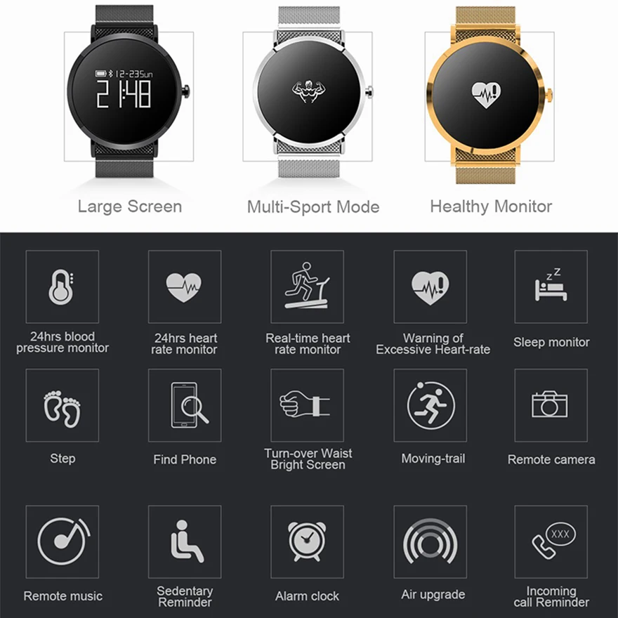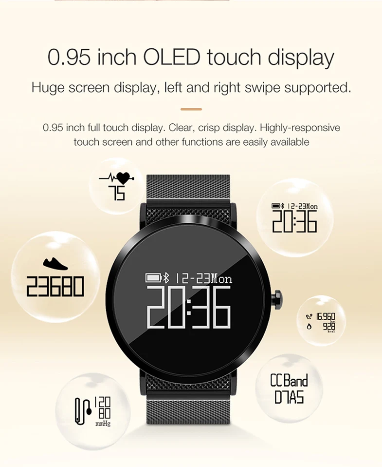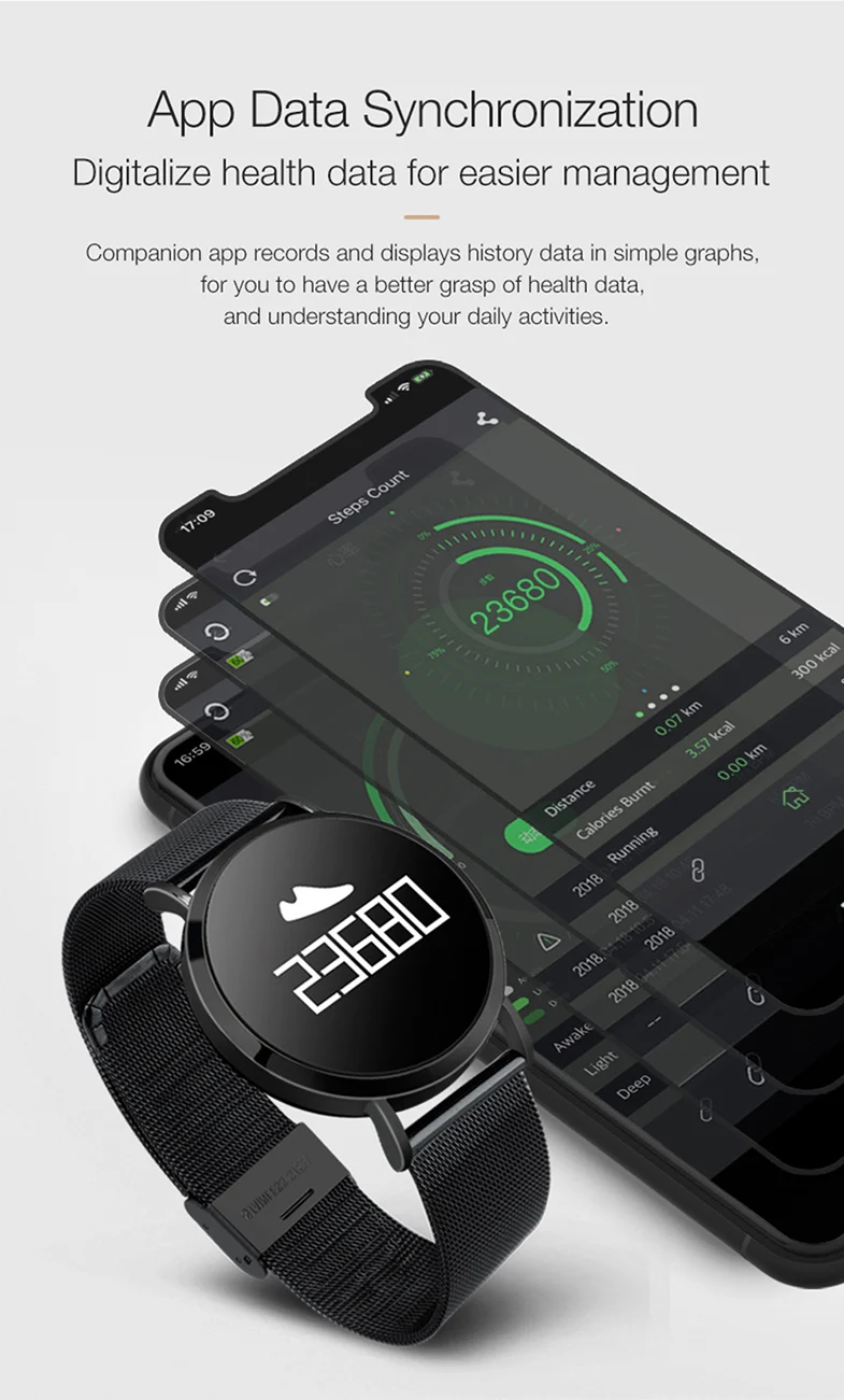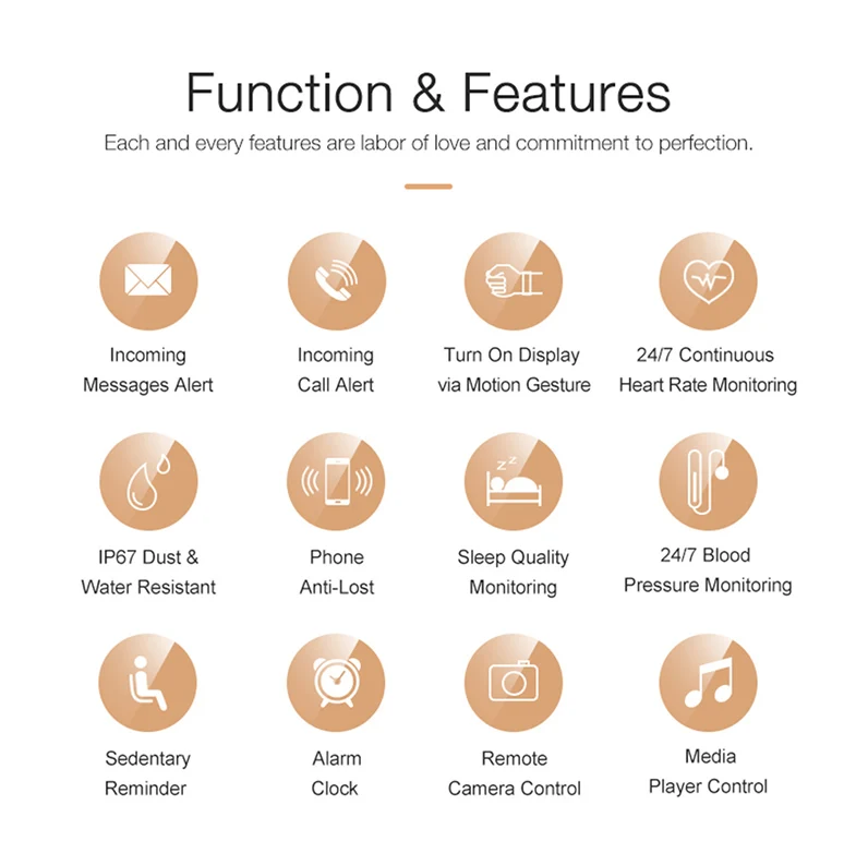 Function:Message Reminder,Passometer,Alarm Clock,Activity Tracker,Blood Oxygen,Fitness Tracker,Blood Pressure,Sleep Tracker,Heart Rate Tracker,Social Media Notifications