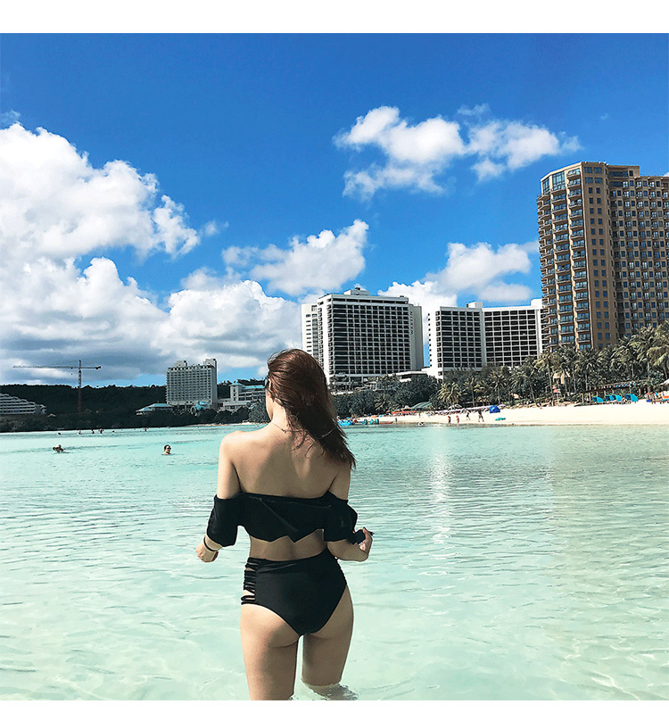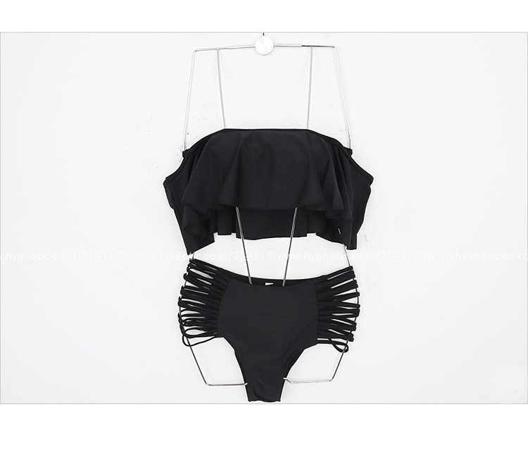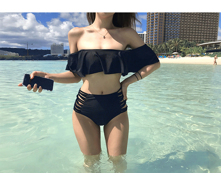 ブラックが大人っぽいフリル付きのオフショルダービキニです。