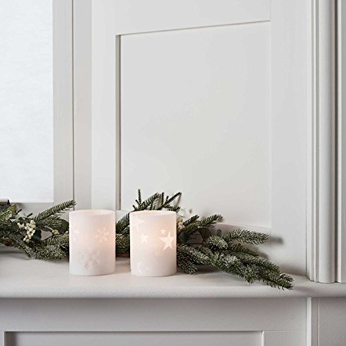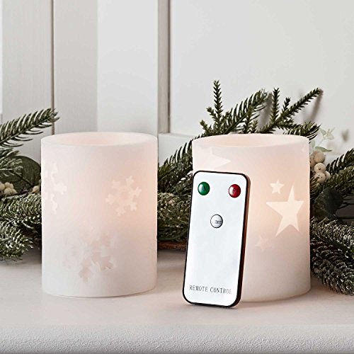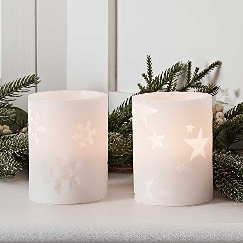 Battery Operated Flameless LED Wax Pillar Candles with Snowflake & Star Designs