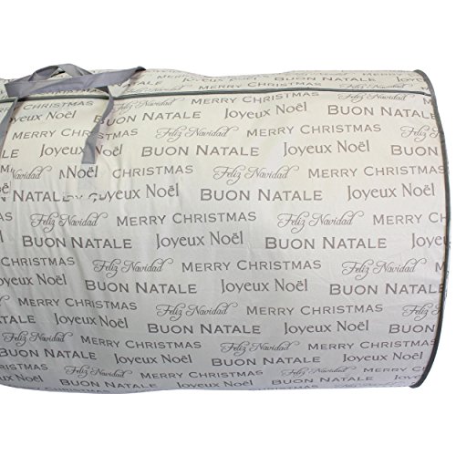 - The Christmas Tree Storage Bag is enhanced with a decorative "Christmas Greetings" design for the perfect festive flair.