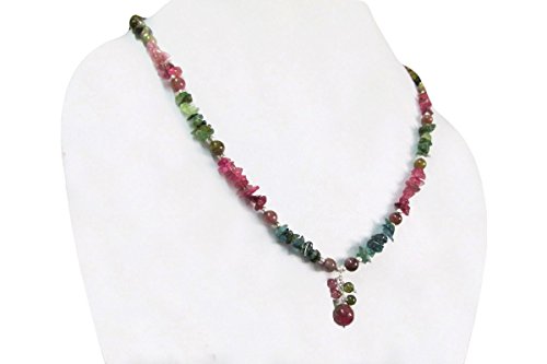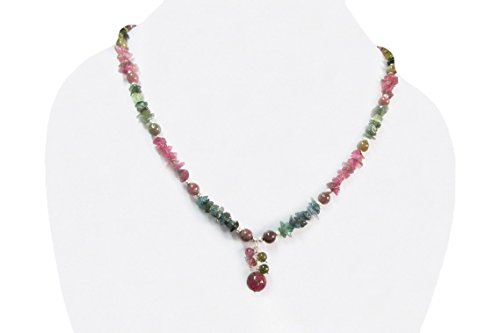 -. Title : Anushruti Watermelon Tourmaline Chips Bead Necklace with Sterling Silver 16" Gemstone Handmade jewelry