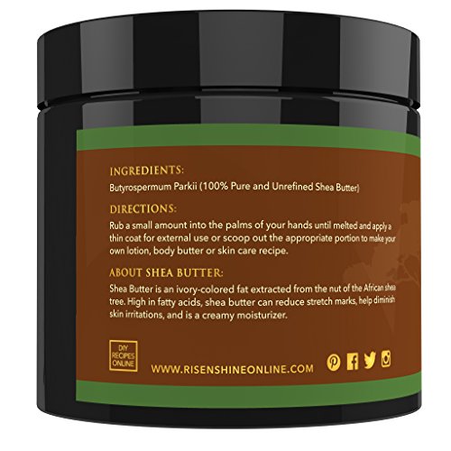 100% ORGANIC SKIN SOLUTIONS! Shea Butter aids in your skin's natural collagen production and has exceptional healing and moisturizing properties for skin. Improves small blemishes, stretch marks, scars, wrinkles, eczema & dermatitis. Properties can help treat skin allergies, insect bites, sunburns, frostbites & more. It protects your skins natural oils and leads to a significant decrease in dryness.