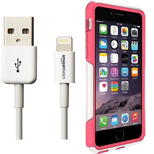 Feature : Includes an AmazonBasics Apple Certified Lightning to USB Cable - 6 Feet, White and Otterbox iPhone 6 Case - Commuter Series / Commuter case features a thin, lightweight 2-piece case provides protection against drops, bumps and shock. / Self-adhesive screen protector guards against scratches. / Port covers block entry of dust and debris. Compatible with AmazonBasics Lightning cable. / Case slides easily in and out of pockets.