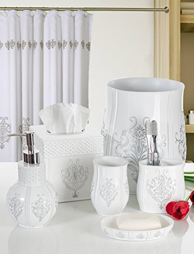 Creative Scents Vintage White Fabric Decorative Shower Curtain, Soft Touch Waterproof Polyester Bathroom Curtain, Bonus a PEVA Shower Curtain liner, Mildew resistant, ,72 x 72 inch