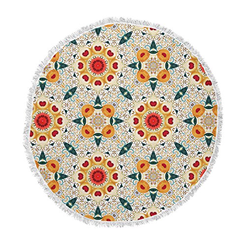 Studio : KESS InHouse Publisher : KESS InHouse Binding : Kitchen Product Description Bring the indoors outside with you this summer with the KESS InHouse round beach towel! great for all those outdoor events such as beach parties, picnics, festivals, concerts, and parks. Made of 100Percent polyester, these towels are machine washable and water absorbent, keeping you and your area dry. With a hand sewn fringe, this will become your go-to item for every outdoor activity. Measuring 60 inch diameter, the top is soft and fluffy, making a perfect surface to play, sit, and lounge. 0