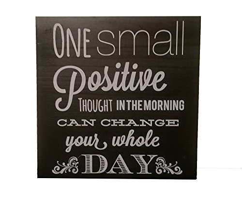 Decorative Wall Decor Sign Primitive Distressed Design, One Small Positive Thought, 10 x 10 Inch, Wood Sign by Zazzy Signs