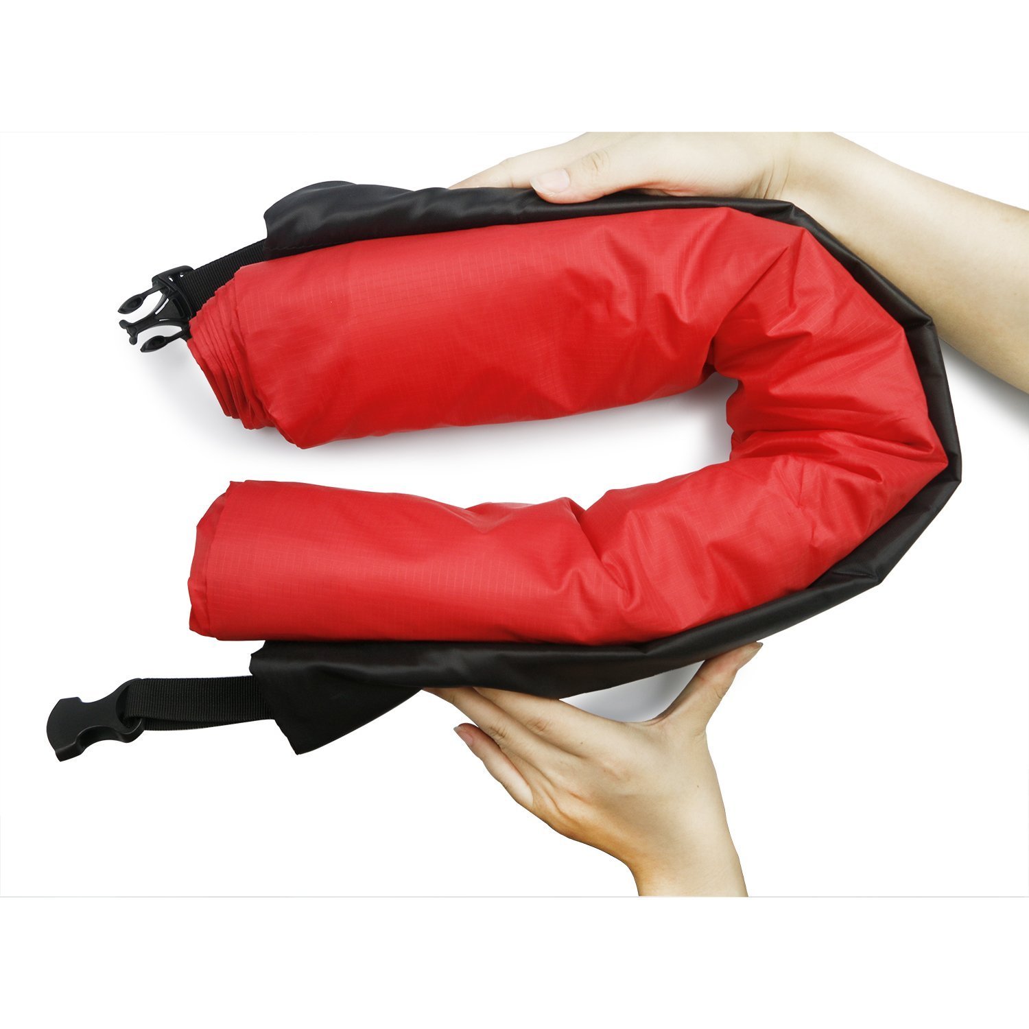 4. Once the air is full, superimpose the mouth part, fold the opening at least 3 or 4 times and then fasten with the buckle.