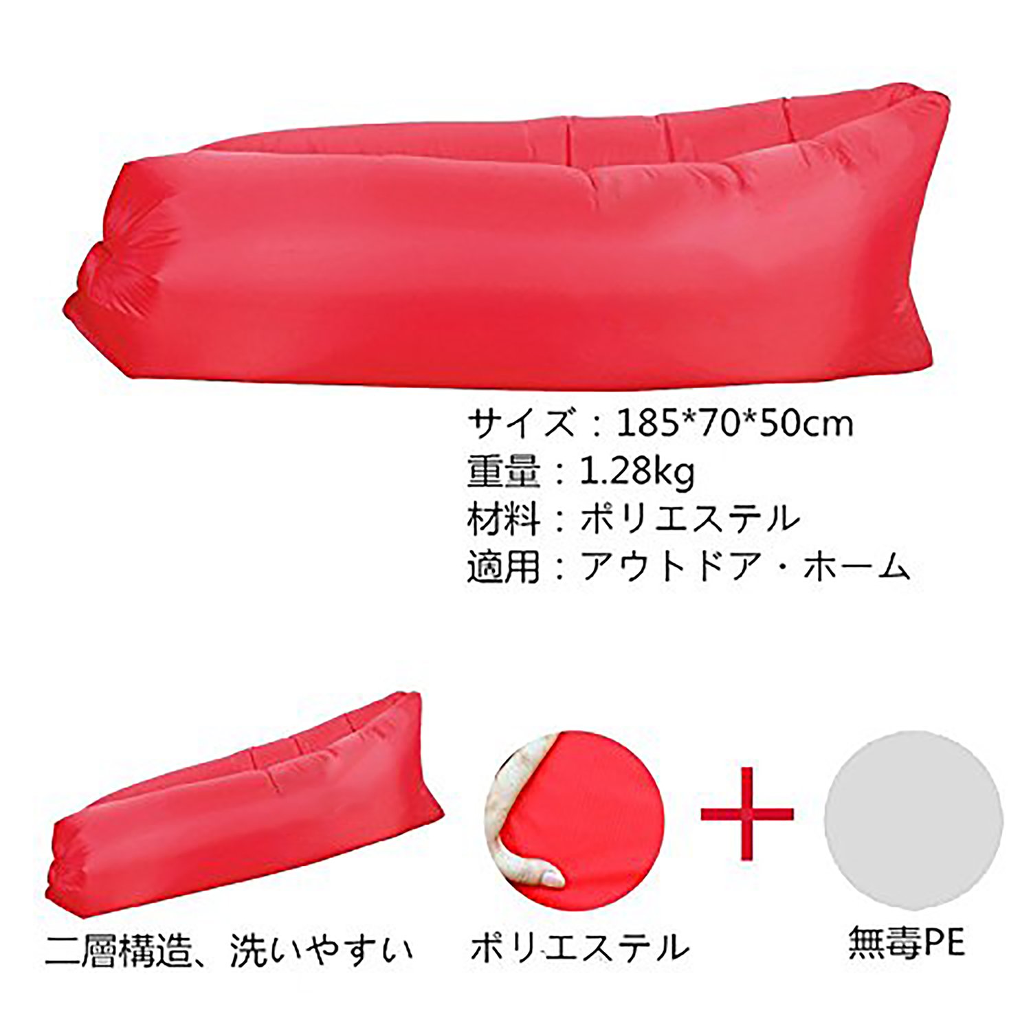 After air filling 185 * 70 * 50 CM (depending on air charge).