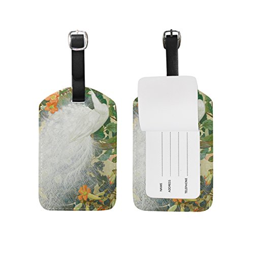 (YZGO)/Accessories/Luggage, Bags Travel/DIRECT FROM USA/YZGO Pure White Elegant Peacock On Tree PU Leather Luggage Tags Bag Label Tag Travel Accessorie...