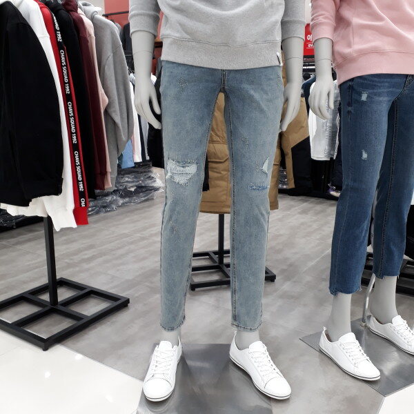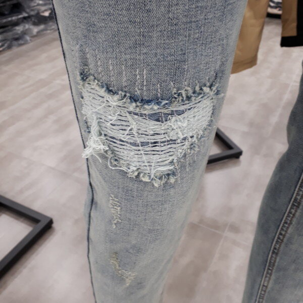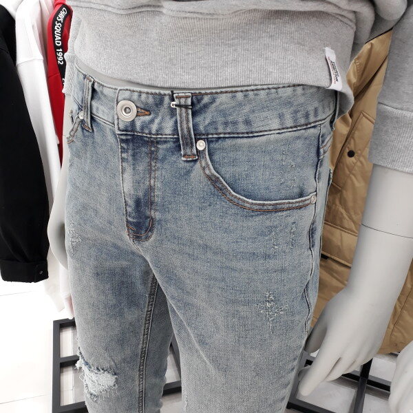 남성 스크래치연청데님 입니다데미지가 아닌 짜집기로 표현한 스크래치가 멋스러운제품 입니다 스판력이 정말 좋읍니다