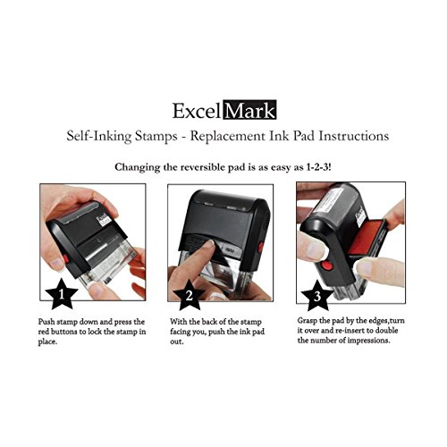 ExcelMark A1539 Self Inking Stamp Ink Refill - Red - Set of 2 Double Sided Pads