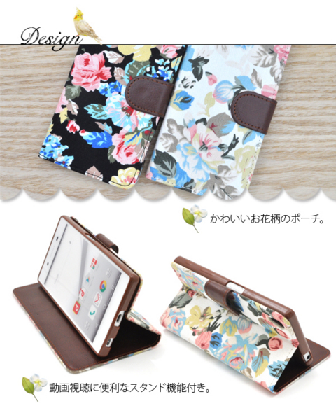 外側は花柄、内側は落ち着いたレザーデザインです。